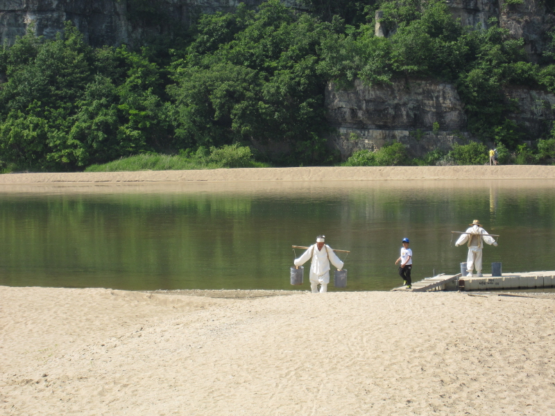 물지게 지고 물나르기